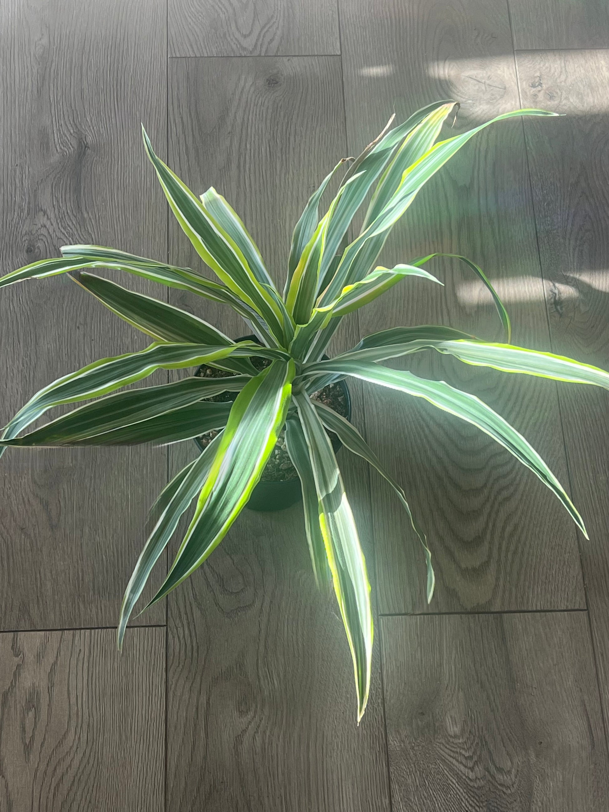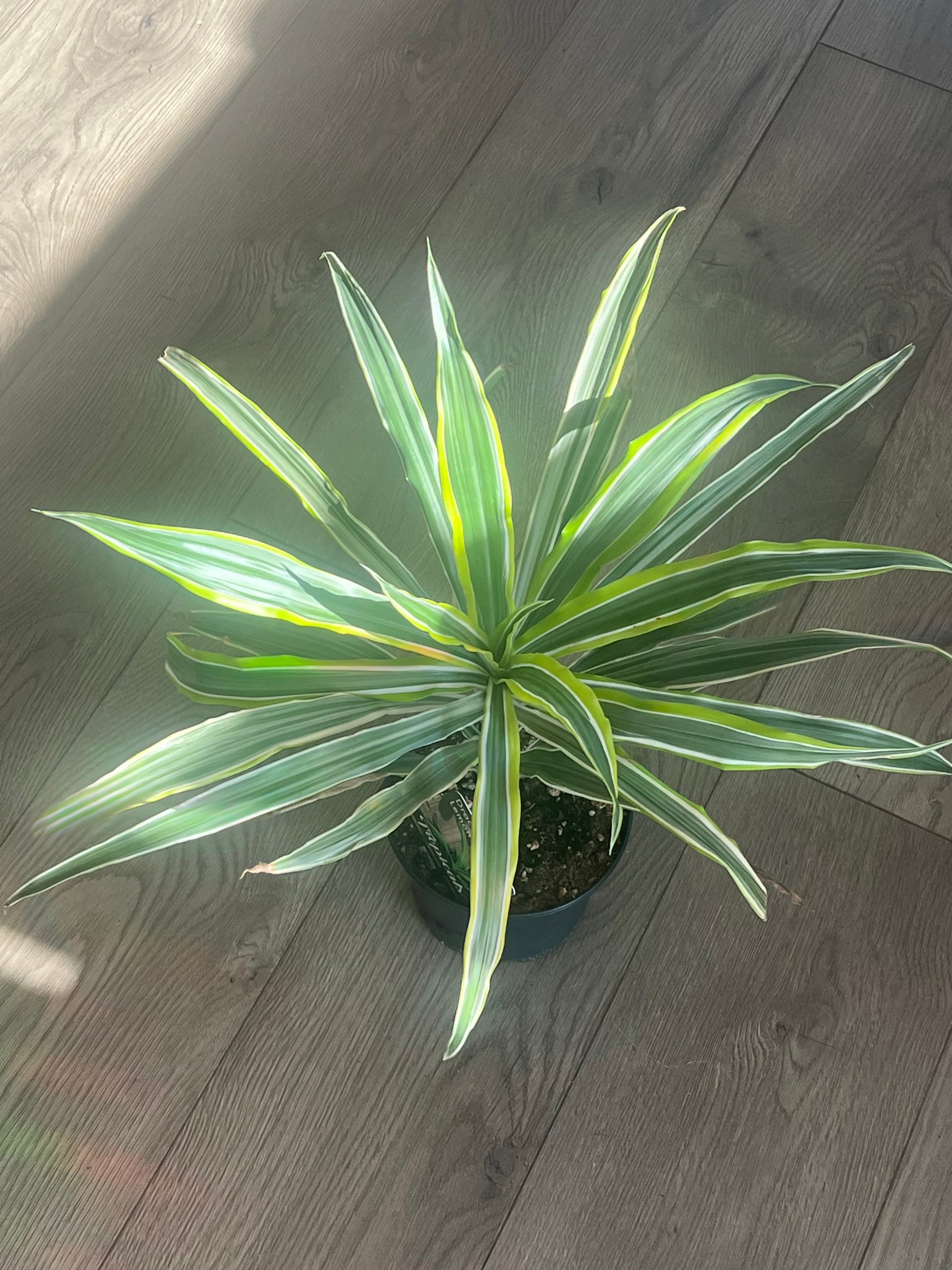 Watering: Water when the top layer of soil is dry. Can tolerate low levels of draught. Dracaena can be sensitive to fluoride.