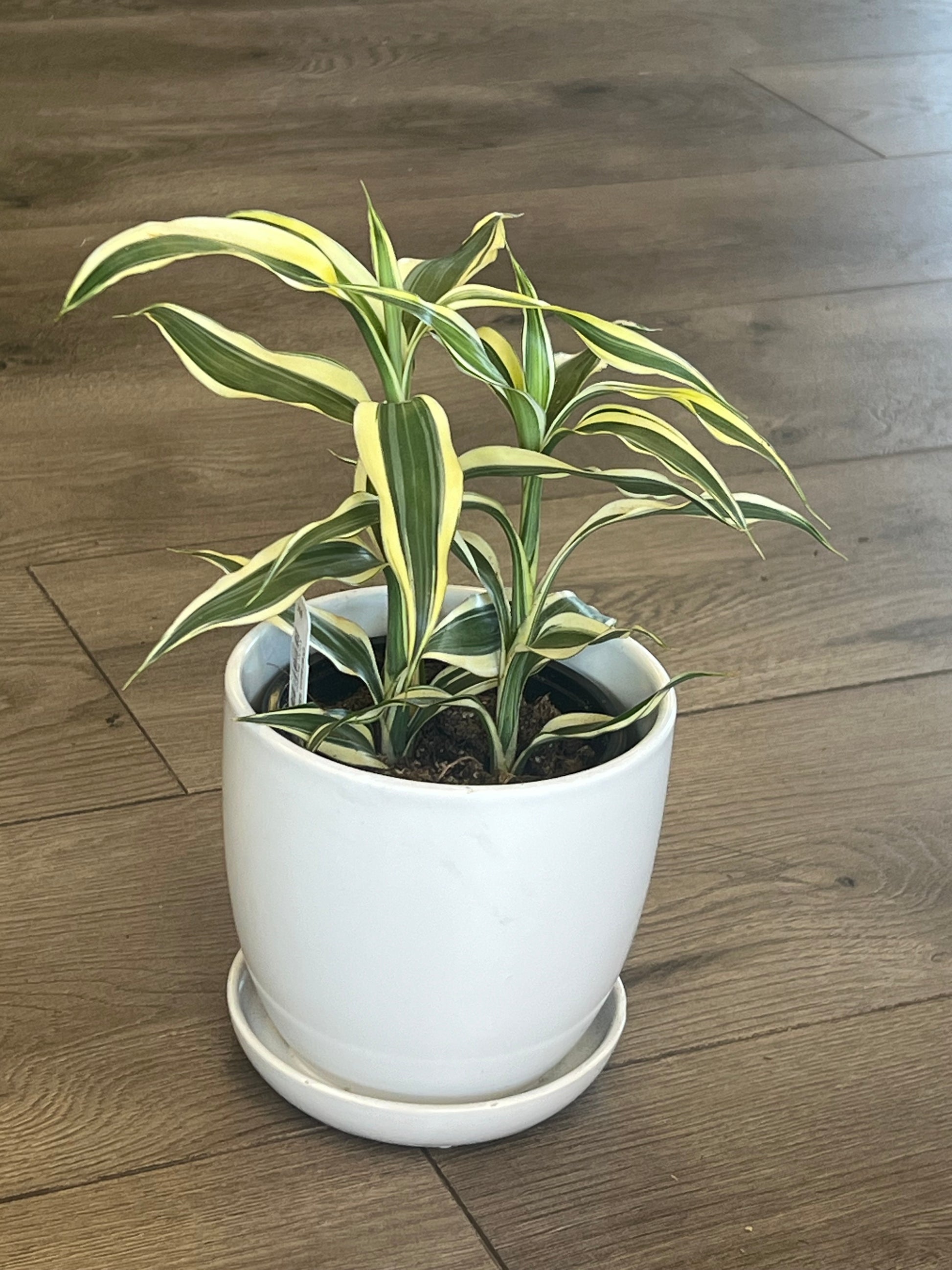 Watering: Water when the top layer of soil is dry. Can tolerate low levels of draught. Dracaena can be sensitive to fluoride.