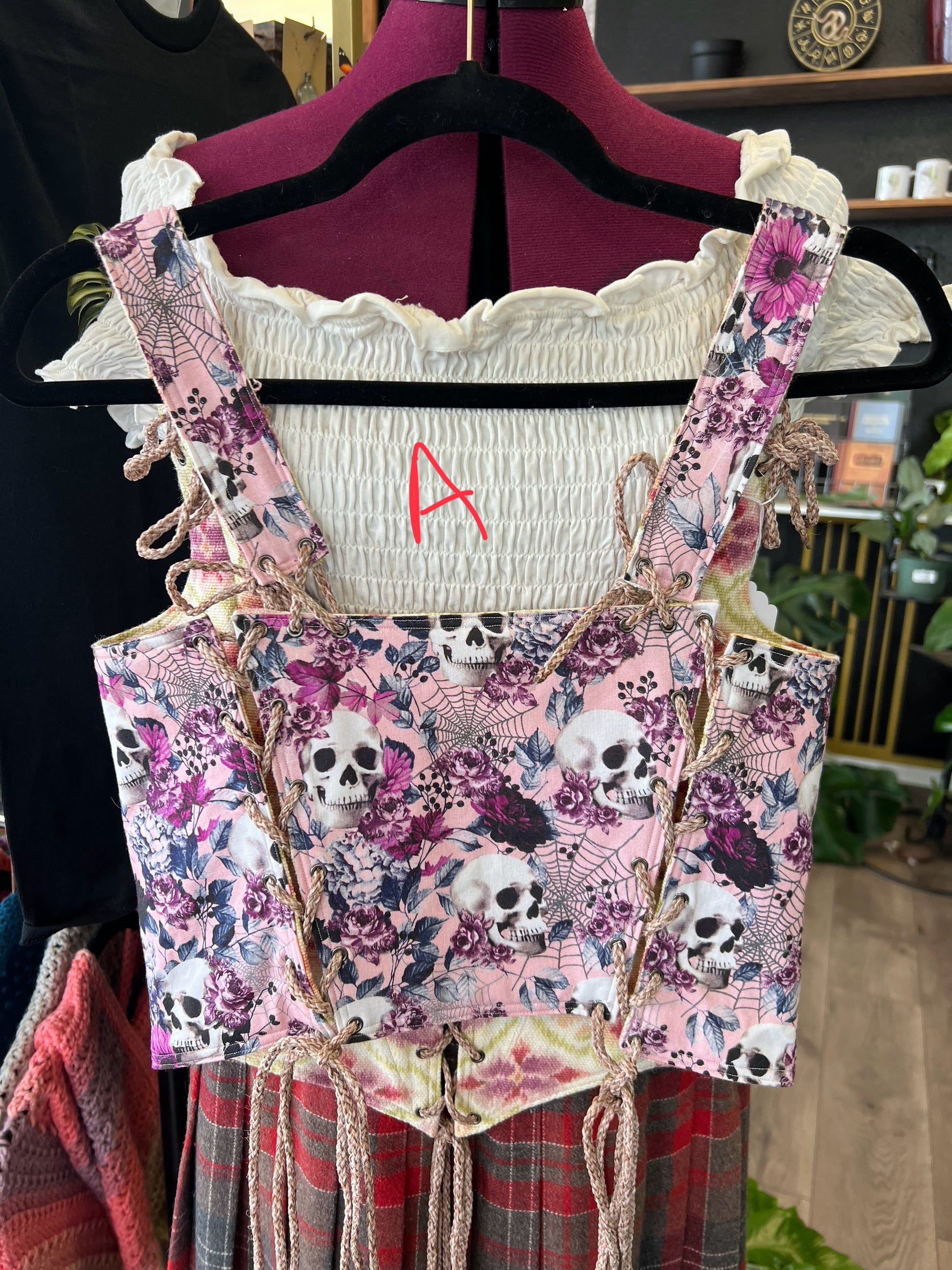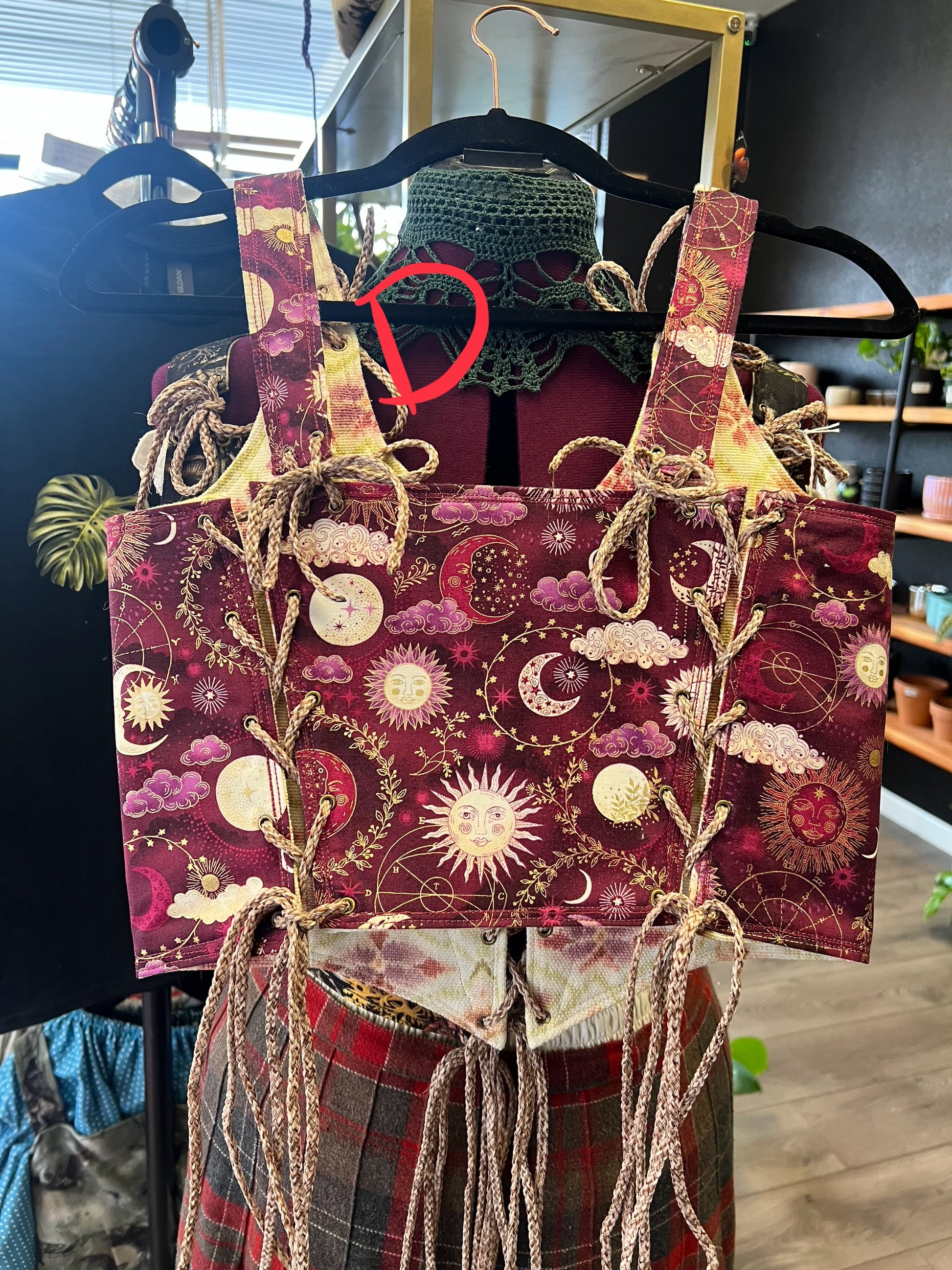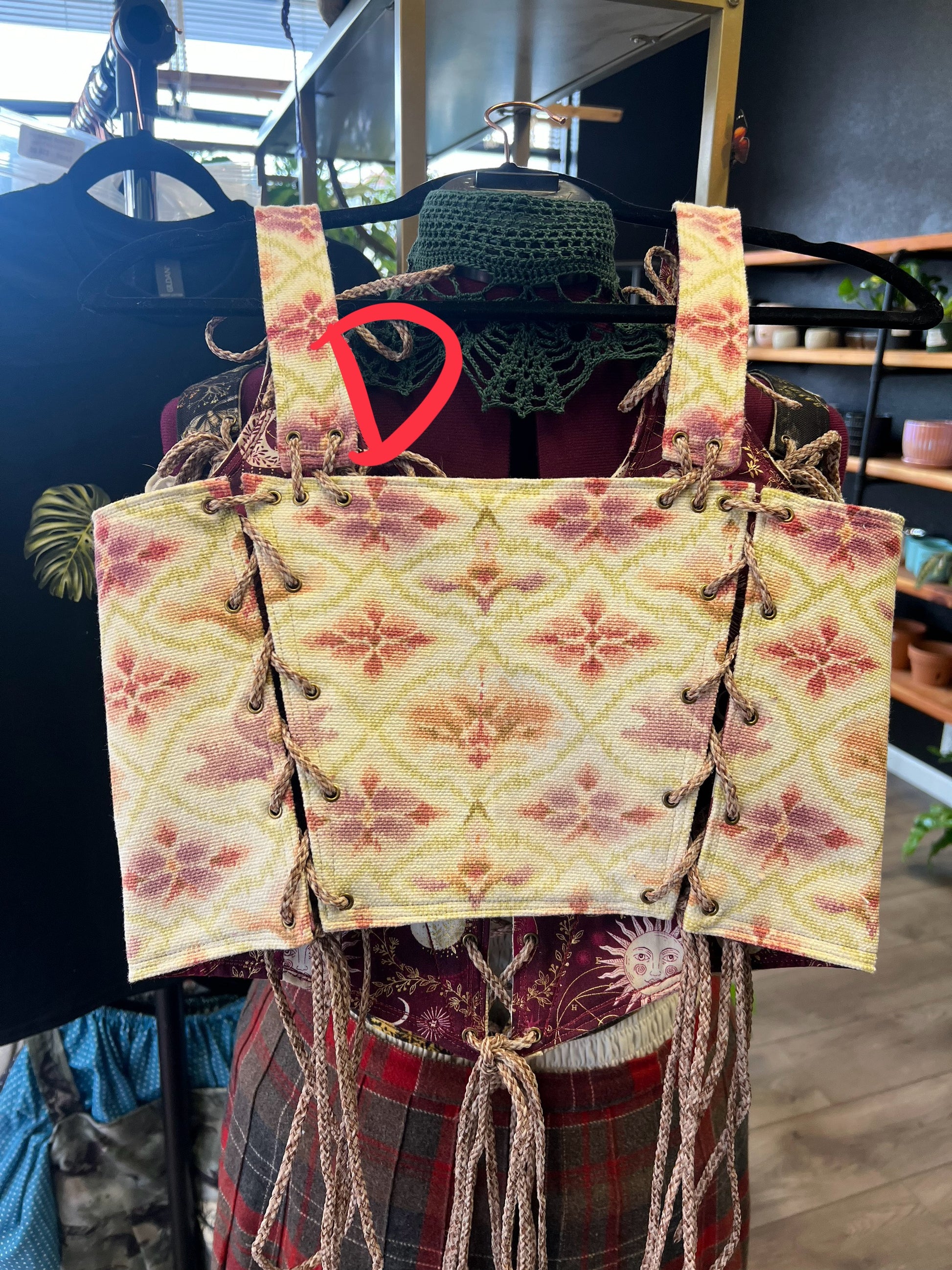 Each corset is reversible with a fantasy print on one side and a more rounded print on the other side.