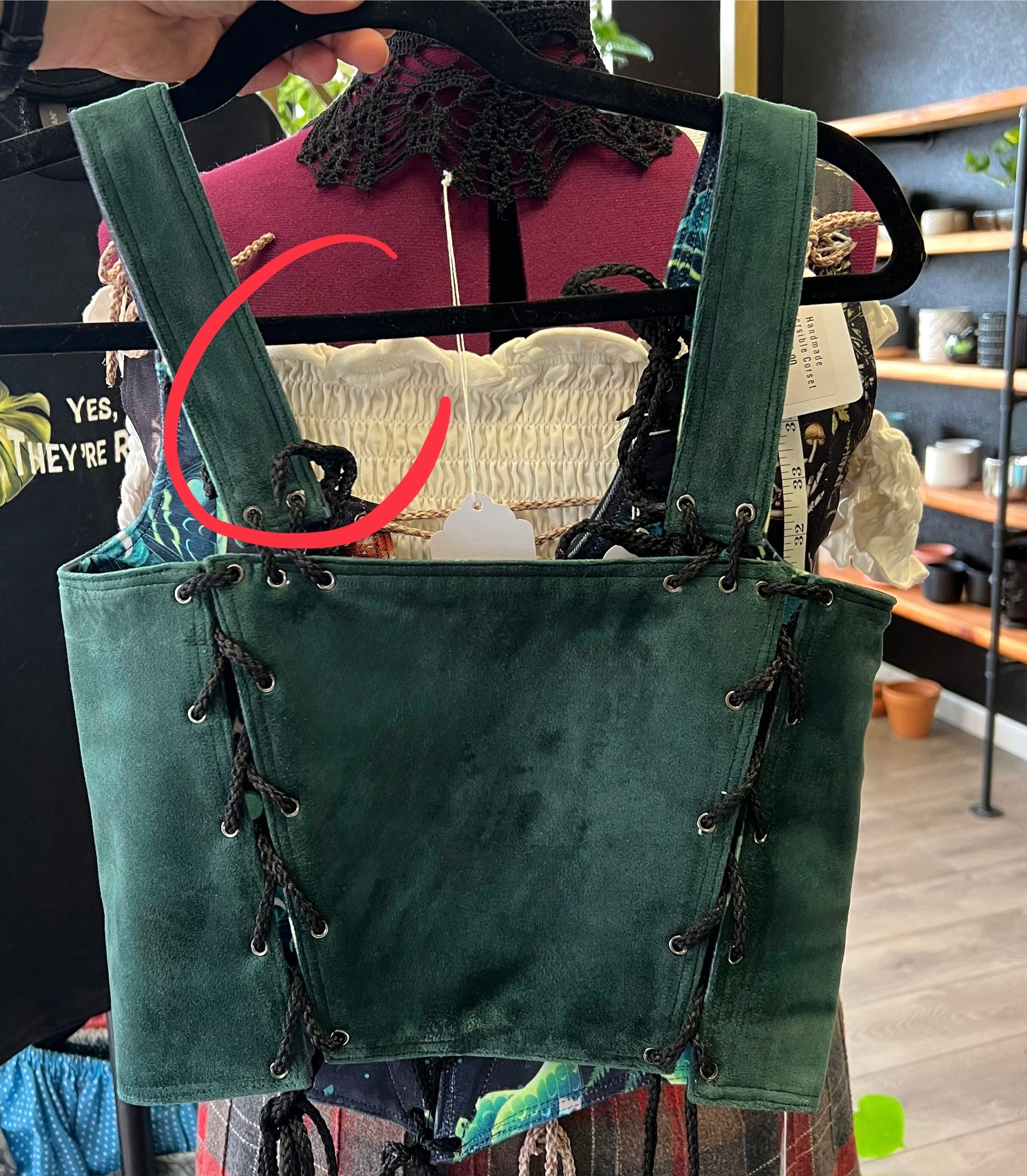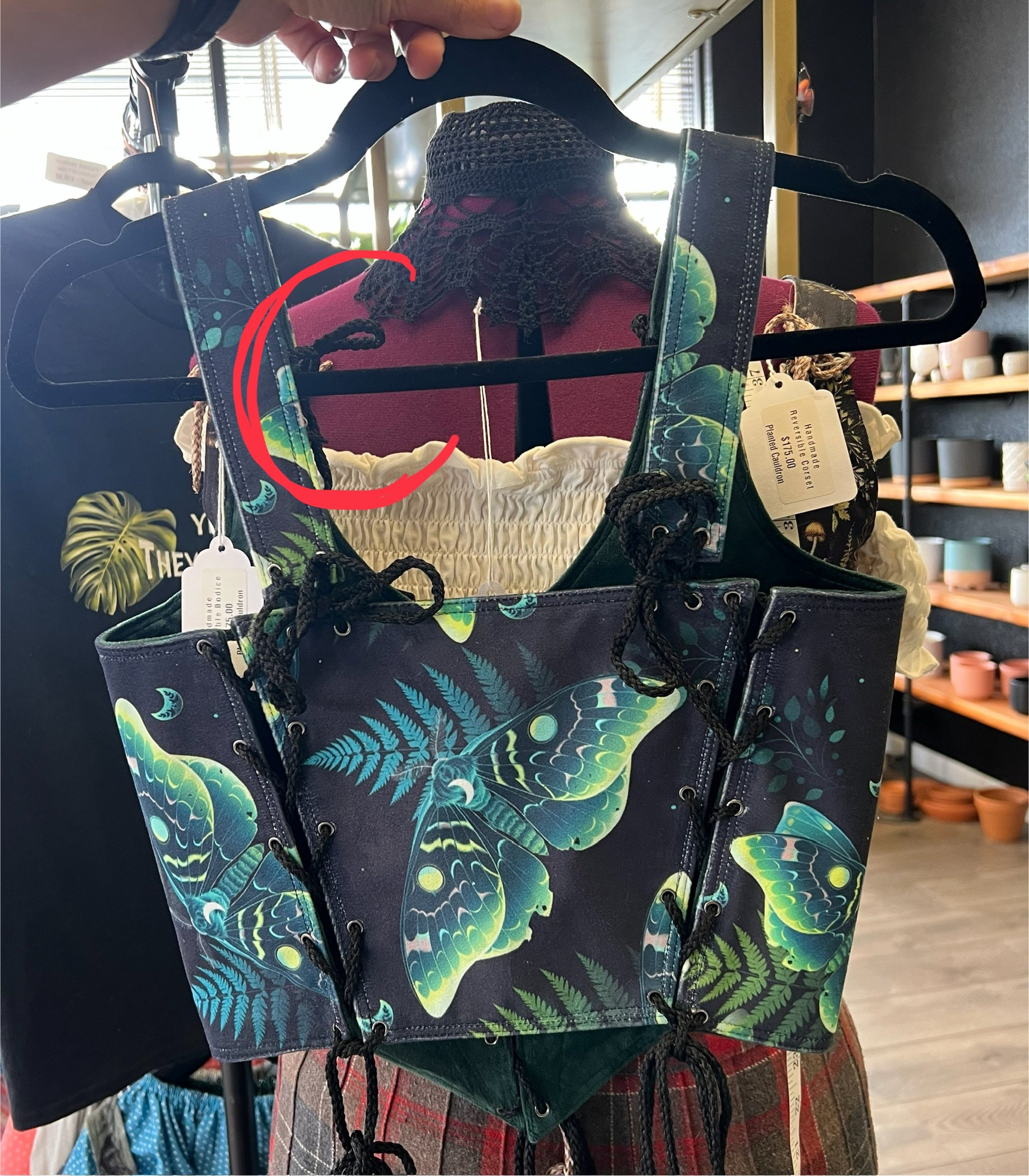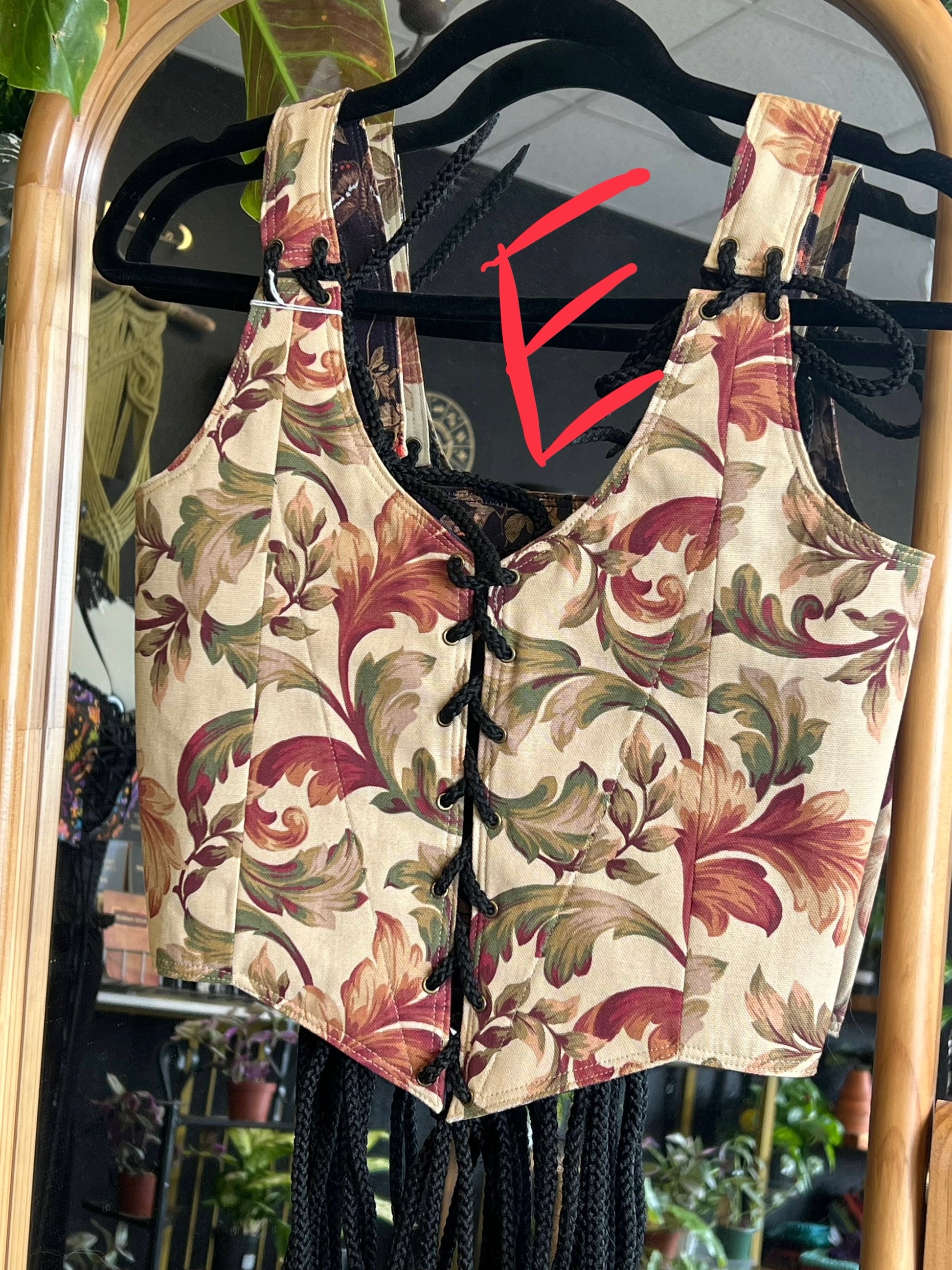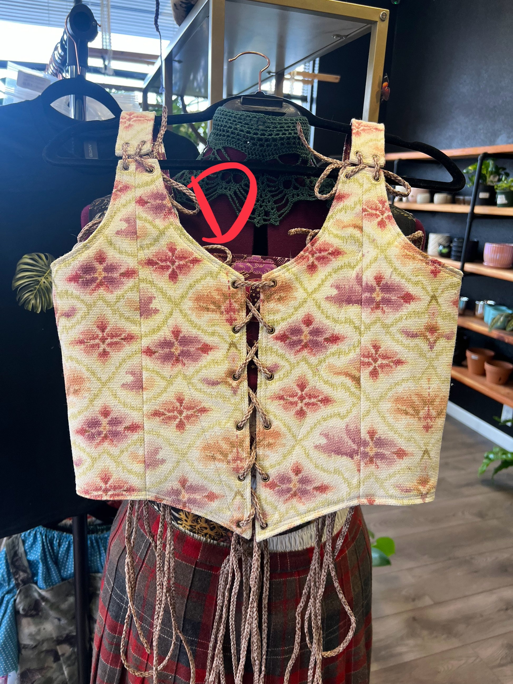 Each corset is reversible with a fantasy print on one side and a more rounded print on the other side.